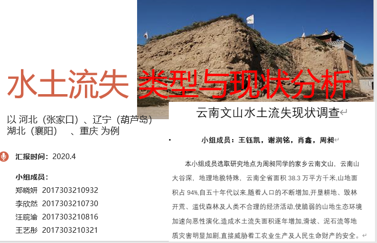 教学策略:按照学校《关于组织好2020年春季学期在线教学等工作的通知》要求,结合疫情期间自身现有教学资源及学生实际学习条件,力争做到激发学生主动学习的兴趣。结合多媒体教学内容,引导学生主动通过课程内容穿插回顾、PPT汇报、课堂讨论和自学交流等多种手段获取知识,达到培养学生独立思考、分析土壤侵蚀规律和水土保持措施配置问题的能力。具体措施如下: