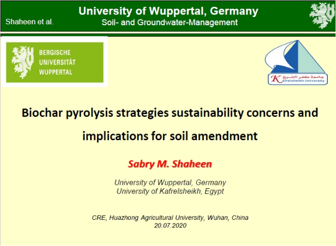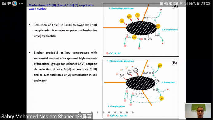 7月21日晚,德国Wuppertal大学研究员Sabry M. Shaheen与98堂师生进行云端学术交流,进行了题为“生物炭热解策略的可持续性问题及其在土壤改良中的应用”的报告,报告会由学院胡红青教授主持,参会师生共39人。