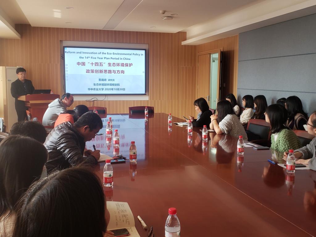(通讯员:白雪)10月30日上午,生态环境规划院、生态环境政策与管理研究所副所长董战峰研究员做客学院“绿博讲坛”,作了题为“中国‘十四五’生态环境保护政策创新思路与方向”学术报告。经管学院杨福霞,98堂蔡鹏、王真、于书霞、宋明伟等师生共计20余人参加报告会,葛小东副教授主持报告会。