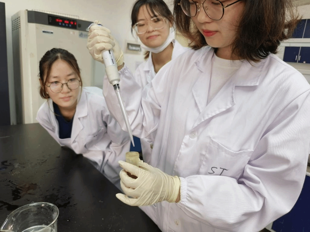 7月10日早上9点,实践团队五位成员准时在实验室集合,正式开始了7天的暑期社会实践。实验室师兄带领队员们参观植物营养课题组实验室,简单介绍了实验室的情况以及实验室近几年在研究硒镉互作植物、富硒农产品方面已有的进展和成效,为队员们规划了实验思路和实验方法。队员们在师兄的指导下进行样品处理、称量、震荡、离心、过滤、上机测试等操作,这些操作在理论课与实验课中开展学习后,在实践中得到了复习巩固,做到了“学有所用,用有所成”。