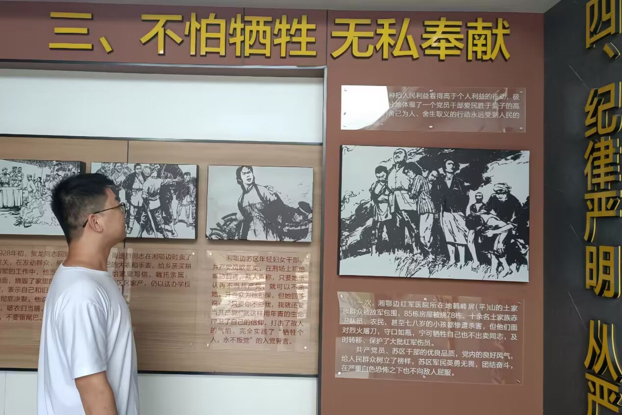 7月8日,实践小组来到恩施市鹤峰县五里坪革命旧址纪念馆,在此探访革命圣地,传承红色精神。五里坪革命旧址纪念馆位于湖北省鹤峰县东部的五里坪,地处湘鄂交通要冲,土地革命战争时期是湘鄂边苏区政治,军事中心和红四军、红二军团、红三军反“围剿“斗争的主战场,也为此处留下了诸多“红色痕迹”,如今这些“红色痕迹”依旧保存原貌,清晰地展示了当初红军驻扎此地的真实情况,实践小组也了解革命战争年代中国人民和中国红军所面临的的艰难险阻。