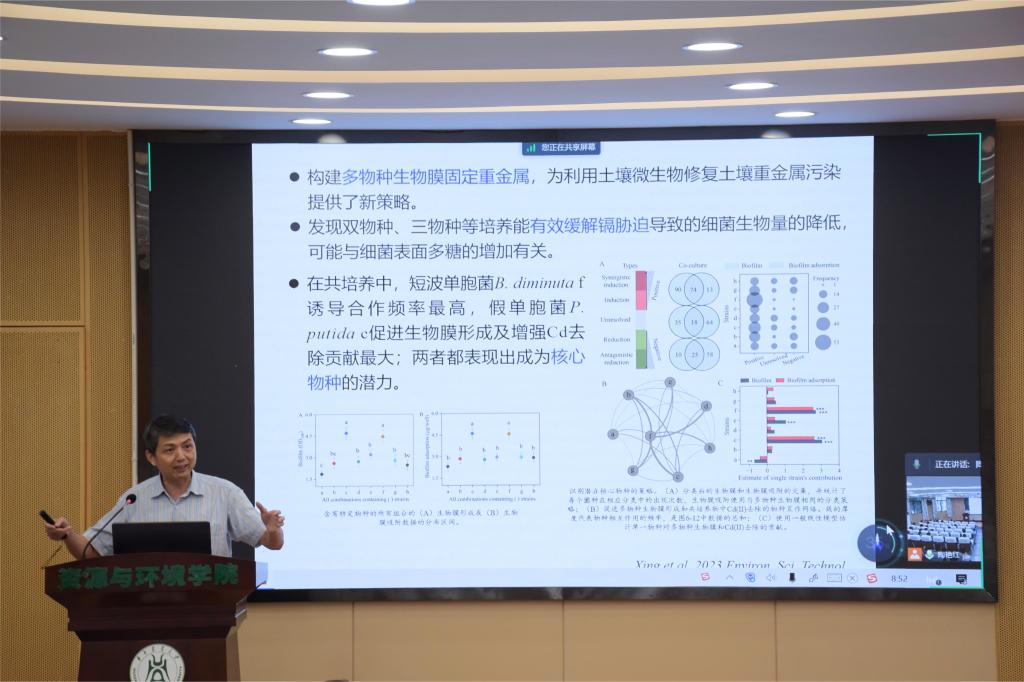国家杰出青年基金获得者、农业微生物资源发掘与利用全国重点实验室副主任黄巧云教授以“科研教学齐迈进,支撑学科上台阶”为题,提出加强科研团队的高质量建设,加快科研团队的发展,推动生物有机肥产业发展,推广低成本土壤绿色修复技术,助力实现国家碳中和目标。蔡崇法教授报告了98堂 土壤侵蚀研究的现状与展望,从土壤、植物学、生态学等方面分析了土壤侵蚀研究的不同视角,未来研究重点领域包括加强土壤侵蚀退化与生产力提升等,将土壤侵蚀与粮食安全密切结合。谭文峰教授以土壤界面过程与土壤健康为主题,重点介绍了集约化土地利用驱动下土壤退化机制与生态调控的研究项目,明确地下不同层次根系的养分利用效率,增加生物多样性,发展集约化土壤健康的生态调控技术。而后,学院的其他教师也分别从工作开展、团队建设、科研情况、研究成果、未来发展方向等方面进行了介绍。