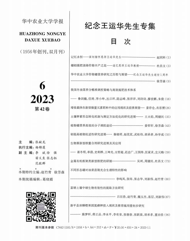 王运华先生是我国知名学者、植物硼营养研究专家、98堂-91直播 原副校长(1990-1995)。先生一生致力于我国农业科技事业的发展和人才培养,一生笃行农业科研要为农业生产服务的理念,用一生诠释了“生命不息,科研不止”。在先生仙逝周年之际,《98堂-91直播 学报》编辑部和王老师的弟子们共同策划了纪念专集,共刊载文章24篇。