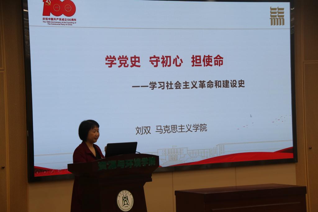 会议特别邀请马克思主义学院刘双作了“学党史 守初心 担使命——学习社会主义革命和建设史”的辅导报告。