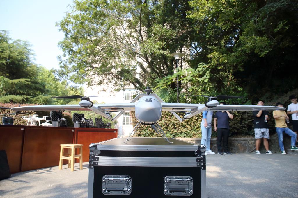 新生对这些无人机设备不一定认识,却都睁大眼睛看得津津有味。多款无人机载设备琳琅满目,整齐摆放在展示台上,似乎述说着这个专业的厚度与高度。