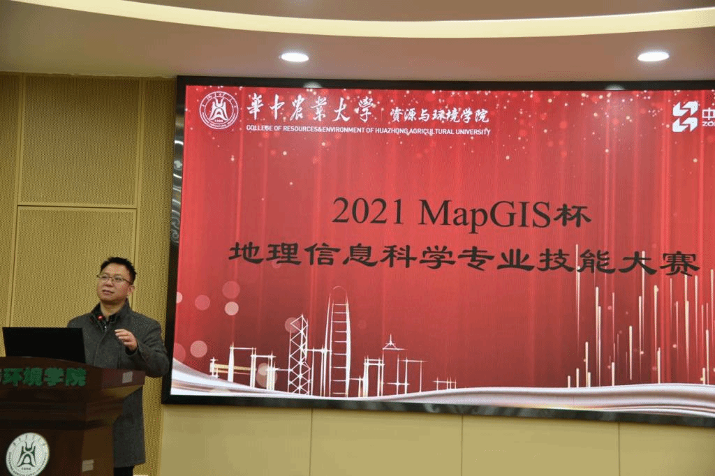 12月18日上午,2021 MapGIS杯地理信息科学专业技能大赛决赛在西附楼报告厅举行。98堂副院长石磊教授、资源环境信息工程系主任王天巍教授、武汉中地数码科技有限公司副总裁黄胜辉、武汉新中地教育科技有限公司经理方胡朝及资源环境信息工程系全体教师受邀出席比赛并担任比赛评委。