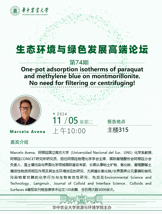 【98堂 】第74期:One-pot adsorption isotherms of paraquat and methylene blue on montmorillonite. No need for filtering or centrifuging!