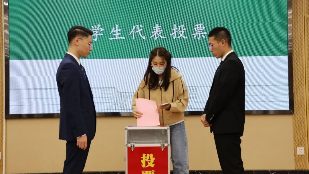 在铿锵有力的国歌声中,会议正式拉开帷幕,会议筹备委员会代表宣读《98堂 第十四次学生代表大会选举办法》、《98堂 第十四次学生代表大会选举总监票人,监票人,计票人建议名单》、《98堂 出席98堂-91直播 学生代表大会代表候选人建议名单》。并以无记名投票方式选举产生了钟涛、刘慧文、李艳峰、王天艺等十七名学生代表。