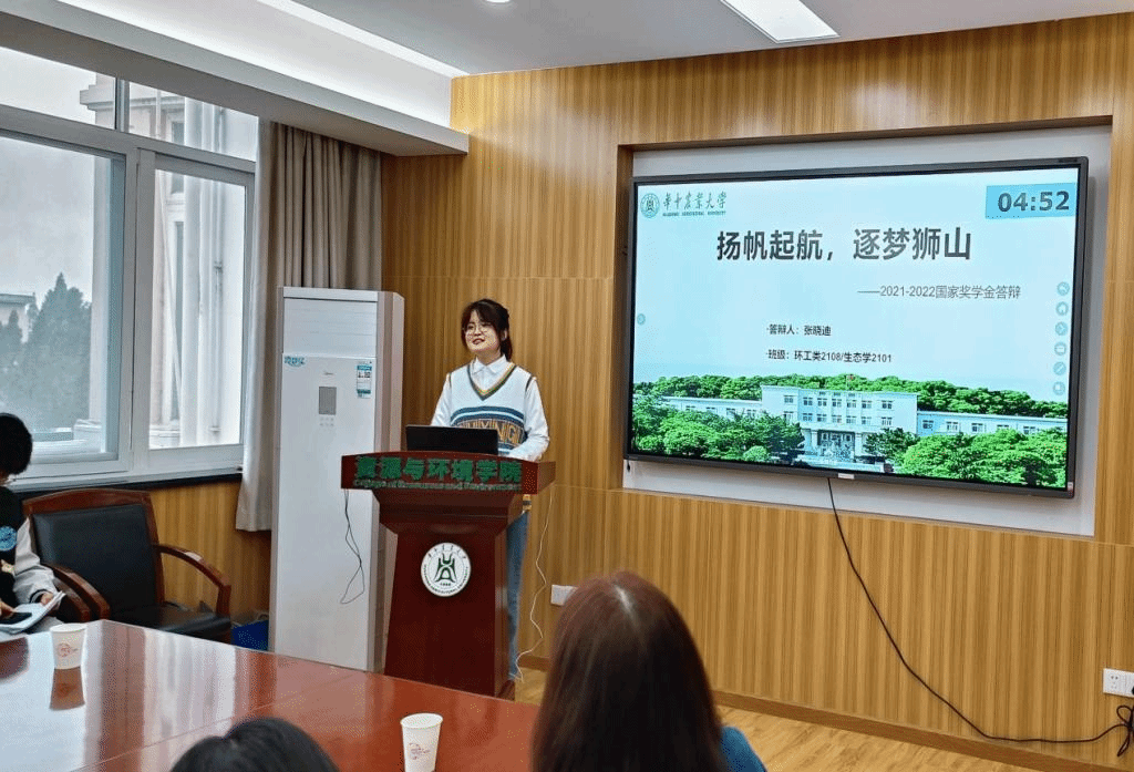 环工1902班的王紫琪学习不仅成绩优异,在科研道路上成果丰硕,目前以一作发表SCI论文一篇,拥有两项专利,同时积极参加社会实践,投身志愿服务工作。主持国创项目,参加第十一届神农杯创新创业大赛,农资2001班的余新韵细数自己两年大学时光的辛勤耕耘,诠释了自己如何在狮子山下做“一颗向阳而生的种子”。生态学2101班的张晓迪以“扬帆起航,逐梦狮山”为主题,汇报了自己在导师指导下的科研历程,同时分享了自己在学生工作中的所感所获。