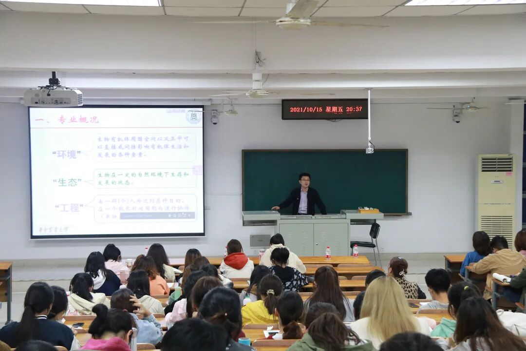 环境生态工程、环境生态工程(水土保持方向)与生态学均为生态学一级学科下的本科专业。赵小虎副教授指出,环境生态工程更多应用理论知识与方法技术去解决实际问题,他说:“运用生态思维,掌握工程技术,保护美好环境。环境生态工程由此而来。”他将南湖与水坑形象对比,阐明环境生态工程是一个大范围的生态修复工程。